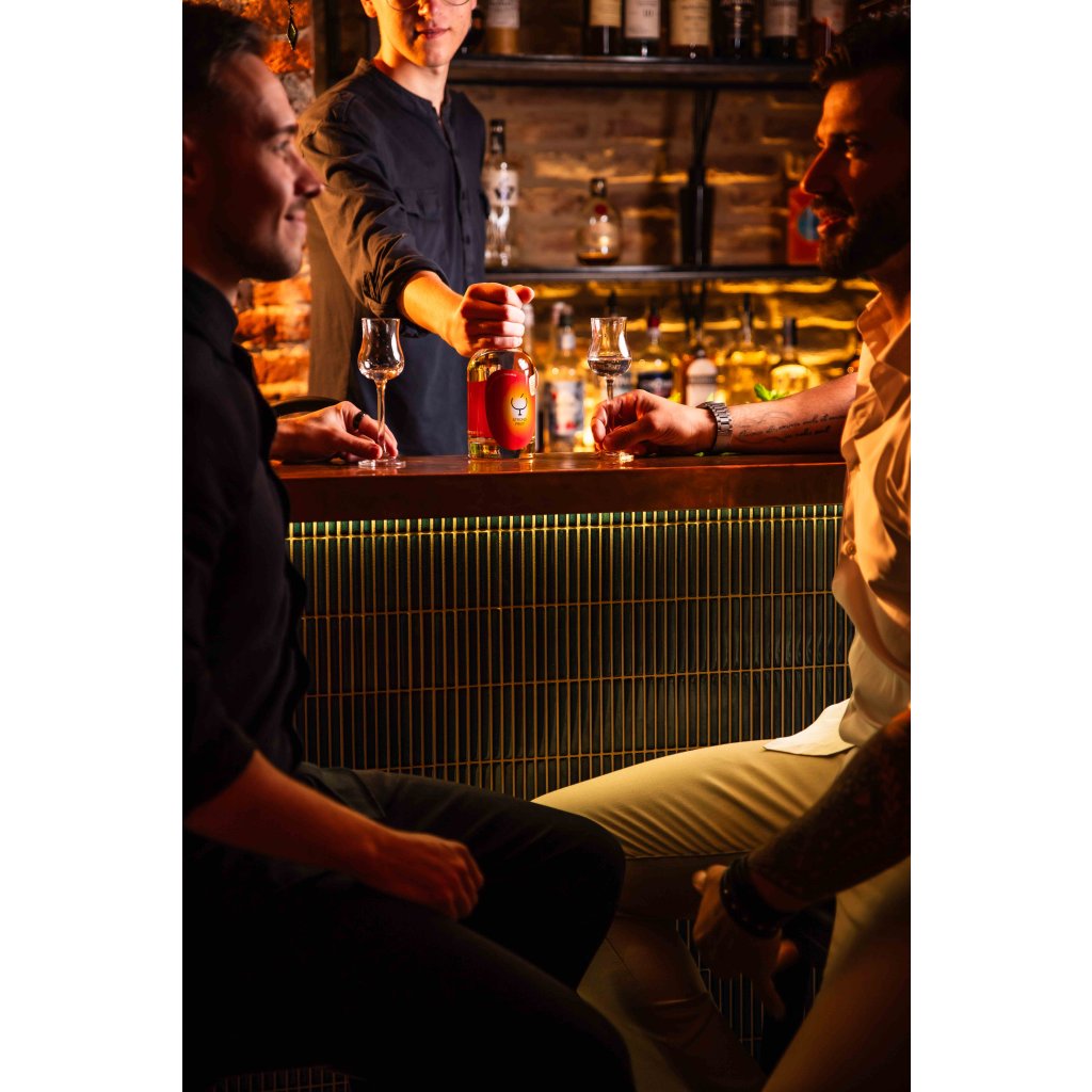 Dušou našich destilátov je však vždy rýdza marhuľová pálenka. Používame len lokálne ručne zozbierané marhule najvyššej kvality. Dôverujeme tvrdej práci a láskavým rukám malých pestovateľov v prirodzenom prostredí marhúľ, priamo v samotnom srdci Európy.